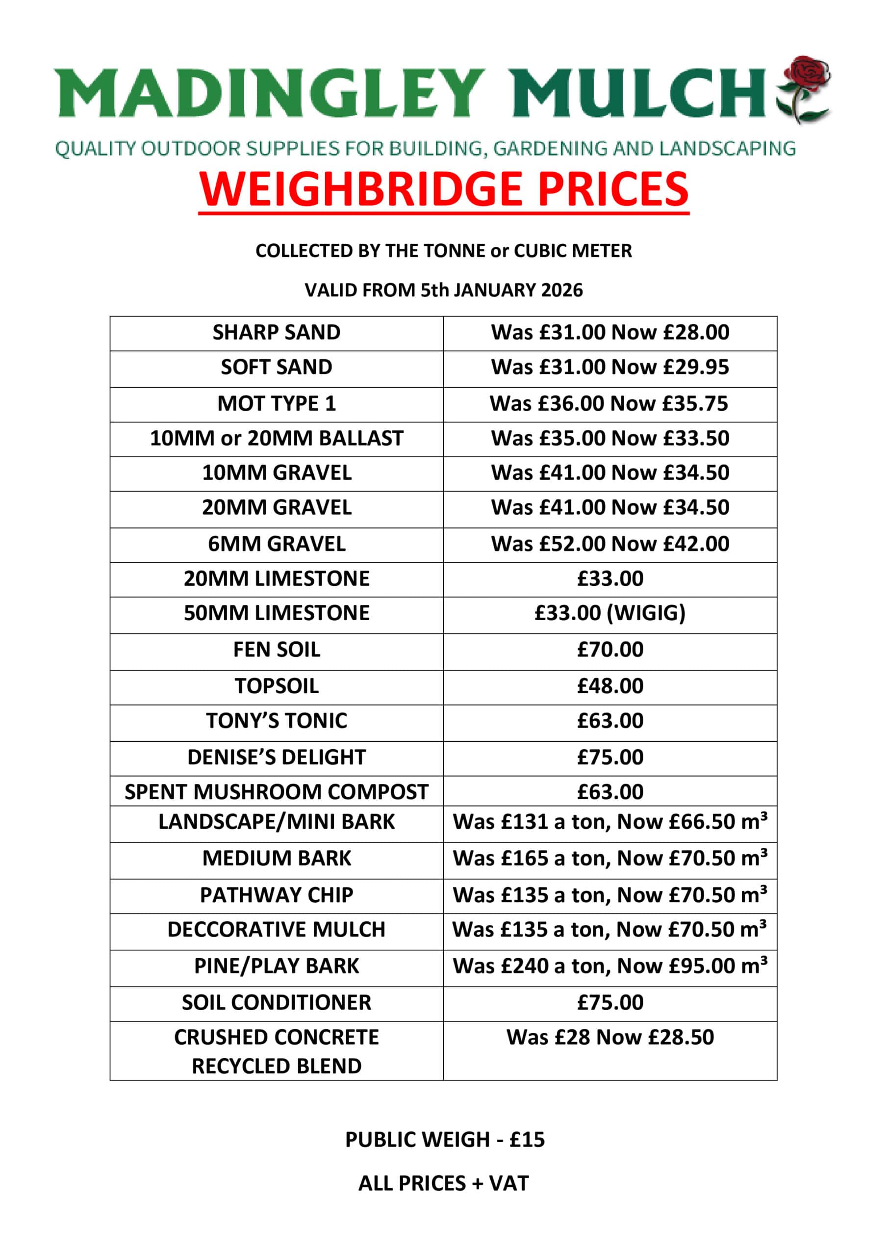 WEIGHBRIDGE PRICES 2025
